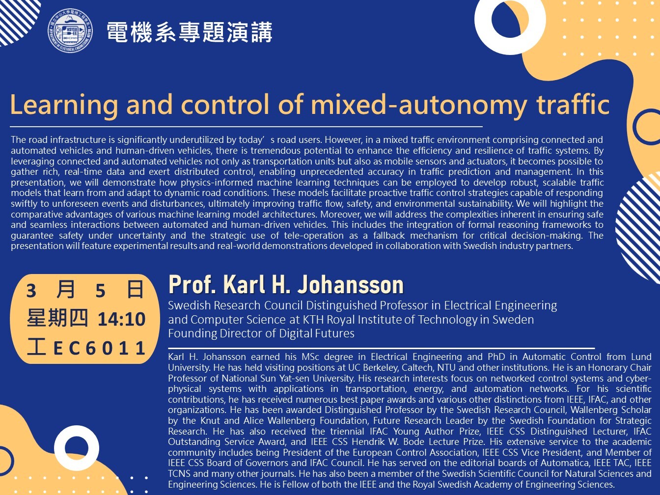 【演講】115.03.05(四)Prof. Karl H. Johansson, KTH Royal Institute of Technology in Sweden | 工EC6011 (English Seminar)