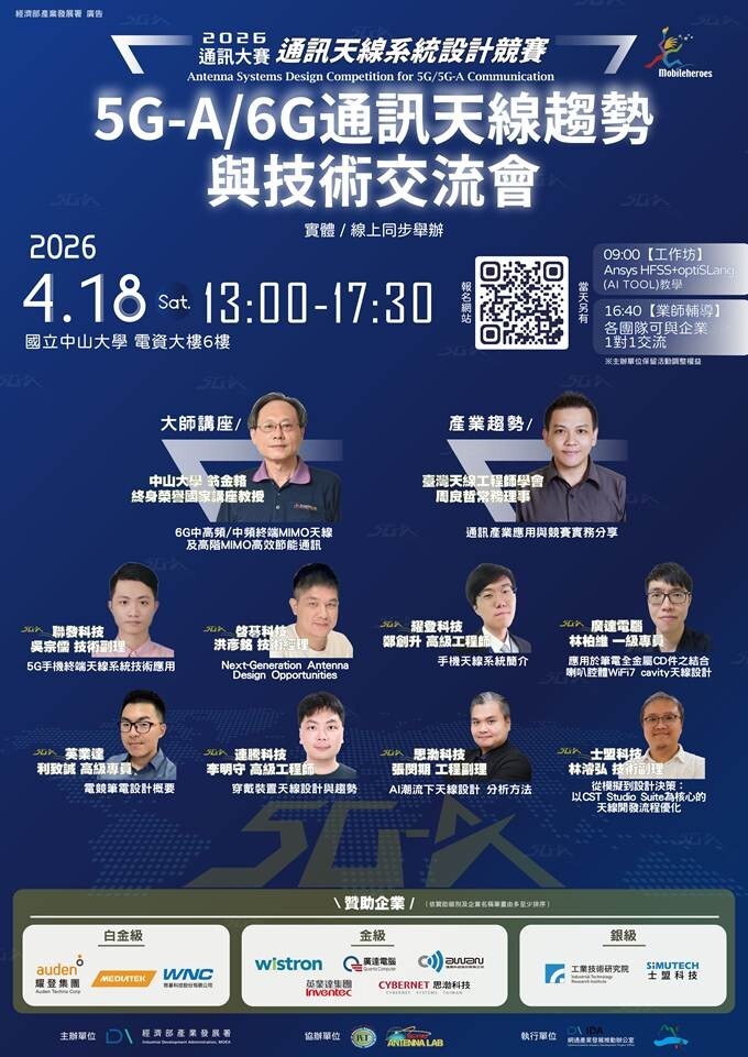 2026天線競賽【5G-A/6G通訊天線趨勢與技術交流會】將於04/18 (六)於中山大學舉辦。