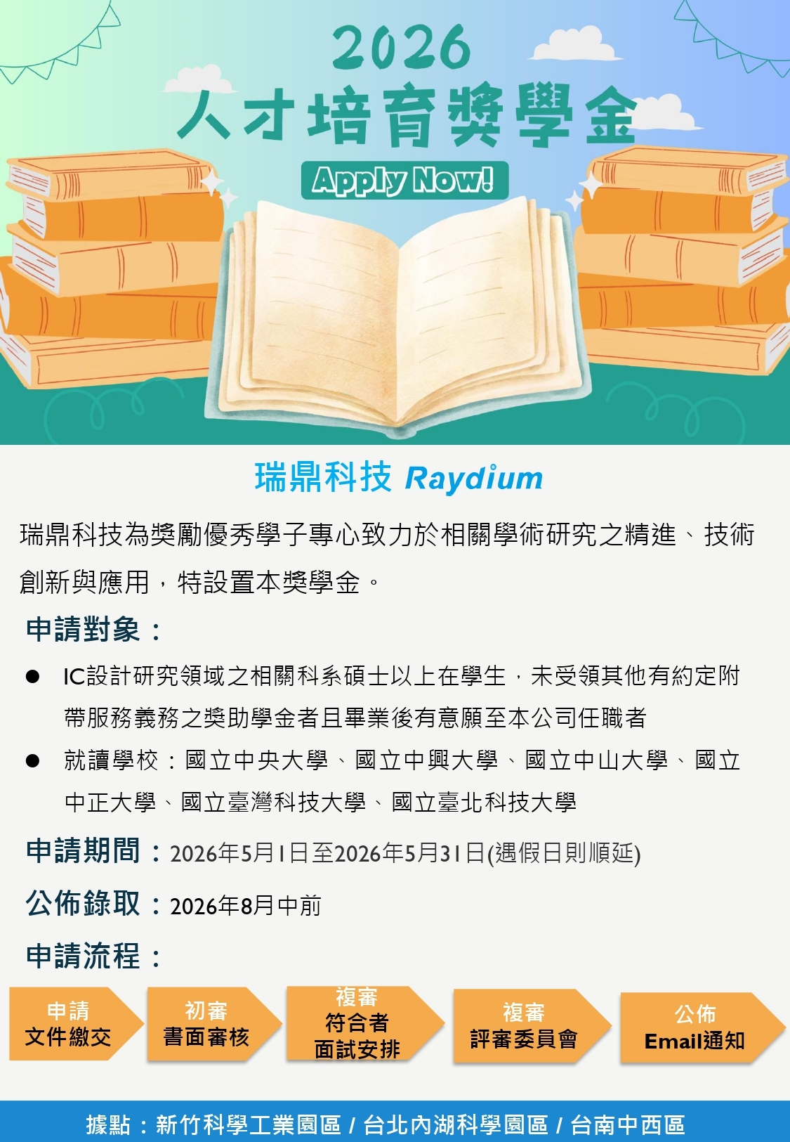 【徵才】2026瑞鼎科技人才培育獎學金申請辦法(收件時間5/1~5/31)